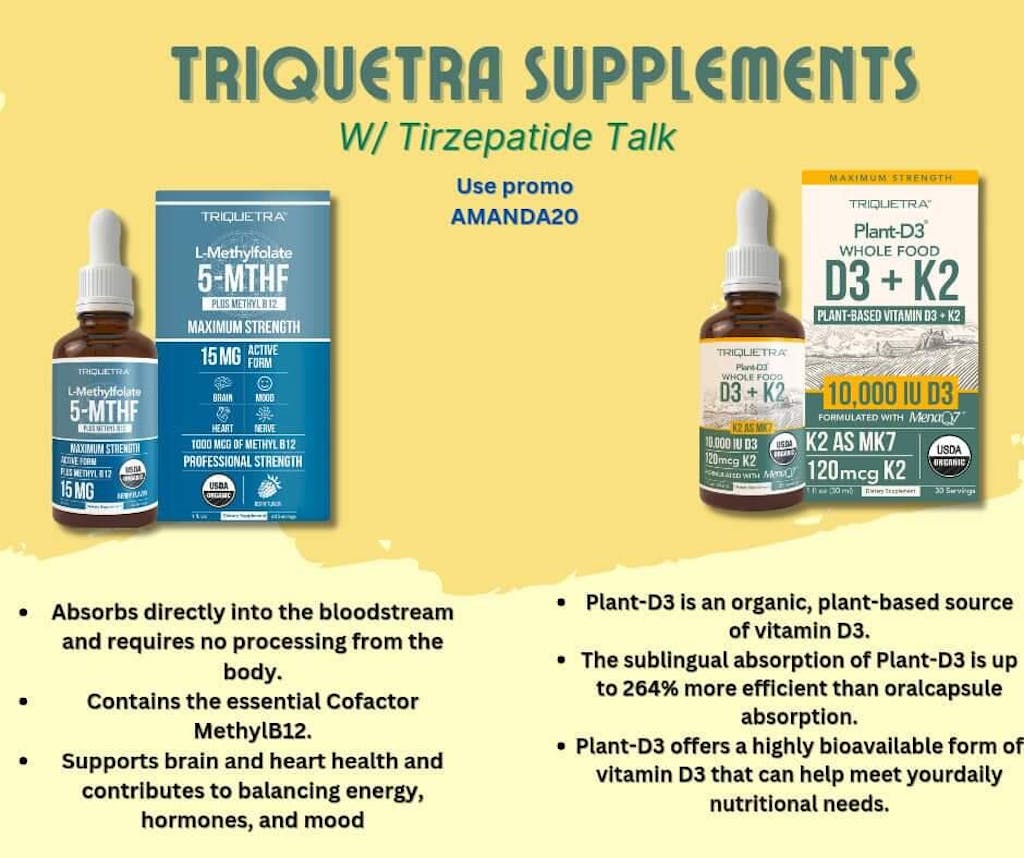 That’s why I’m excited about this little dropper from Trigquetra. It’s a liquid blend of L-methyl folate—already in that active 5-MTHF form—plus methylcobalamin, the active version of B12. No conversion needed. A dropperful on or under your tongue is like giving your body the tools it’s been asking for, especially if you’re one of those 60% with that genetic hiccup. A few drops a day, and you’re supporting your methylation cycle—your heart, your brain, your energy—all without another pill to swallow.